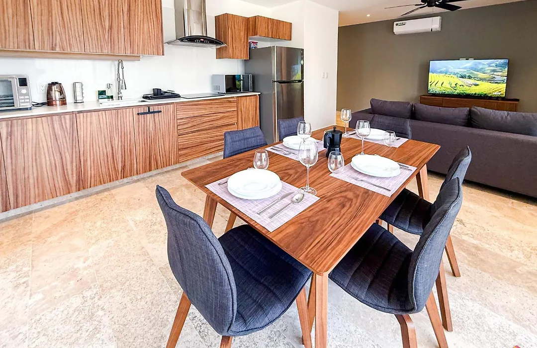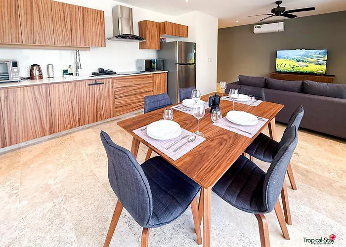 Exclusive 2 Bedroom Apartment Private Pool Fast Wifi In Aldea Zama offers convenient self-catering facilities, including an equipped kitchen with an oven. A terrace is available for guests to relax on after a busy day.